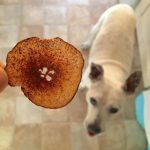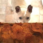 The only thing left to do now would be to give your dog a pear crisp and see if you get a paws up and a waggy tail. As you can see from these photos, chief treat taster in residence, Bandit, was itching to eat the whole bowl. We would love to know if you decide to give this recipe a try and what your dog thinks of them, so please do let us know if you have any questions.