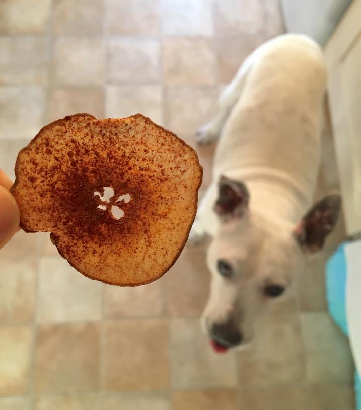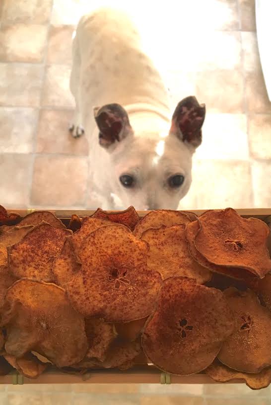 The only thing left to do now would be to give your dog a pear crisp and see if you get a paws up and a waggy tail. As you can see from these photos, chief treat taster in residence, Bandit, was itching to eat the whole bowl. We would love to know if you decide to give this recipe a try and what your dog thinks of them, so please do let us know if you have any questions.