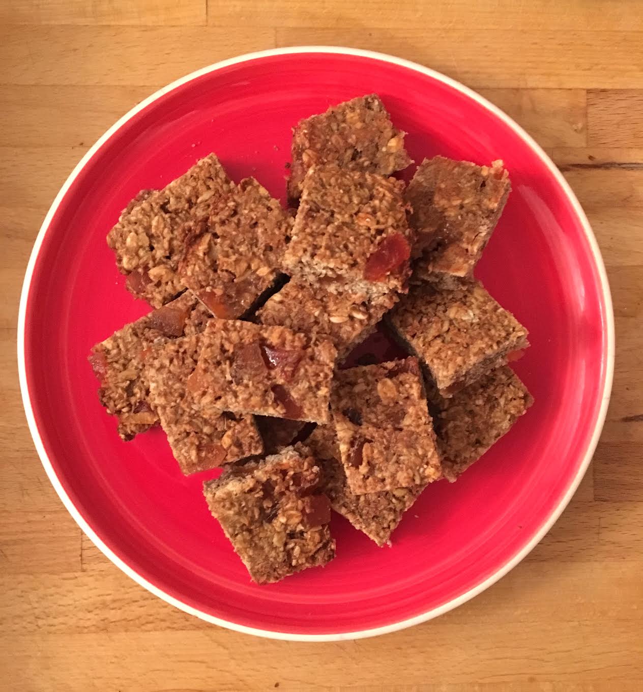 Allow the flapjacks to cool down before cutting into shapes. With these ingredients you should be able to divide into approximately eight bars. Then all you need is a willing canine participant to sample the flapjacks for you. Office dog and resident crumb-hoover Bandit never turns down the chance to try a new snack and has given the flapjacks her seal of approval.