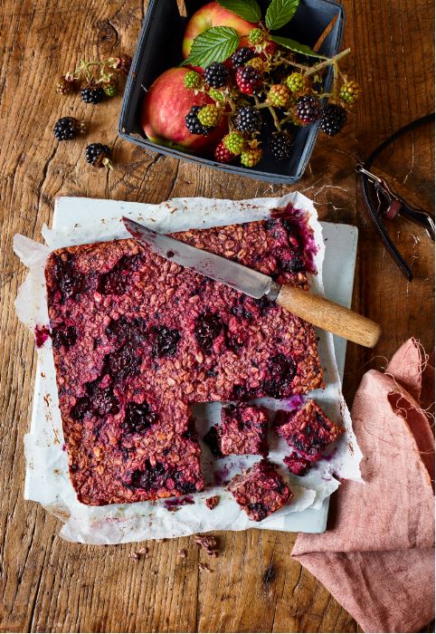 - Tip the mixture into the prepared baking tray. Smooth roughly level, then press the oats down firmly with the back of the spoon or a spatula.